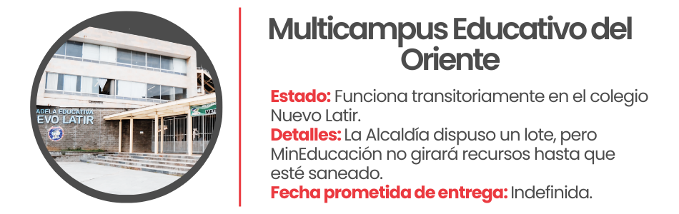 La Alcaldía de Alejandro Eder tampoco tiene una fecha definida de entrega, a pesar de que inicialmente (2024) se proyectó un tiempo de siete años. Es decir, que estaría listo para 2031.