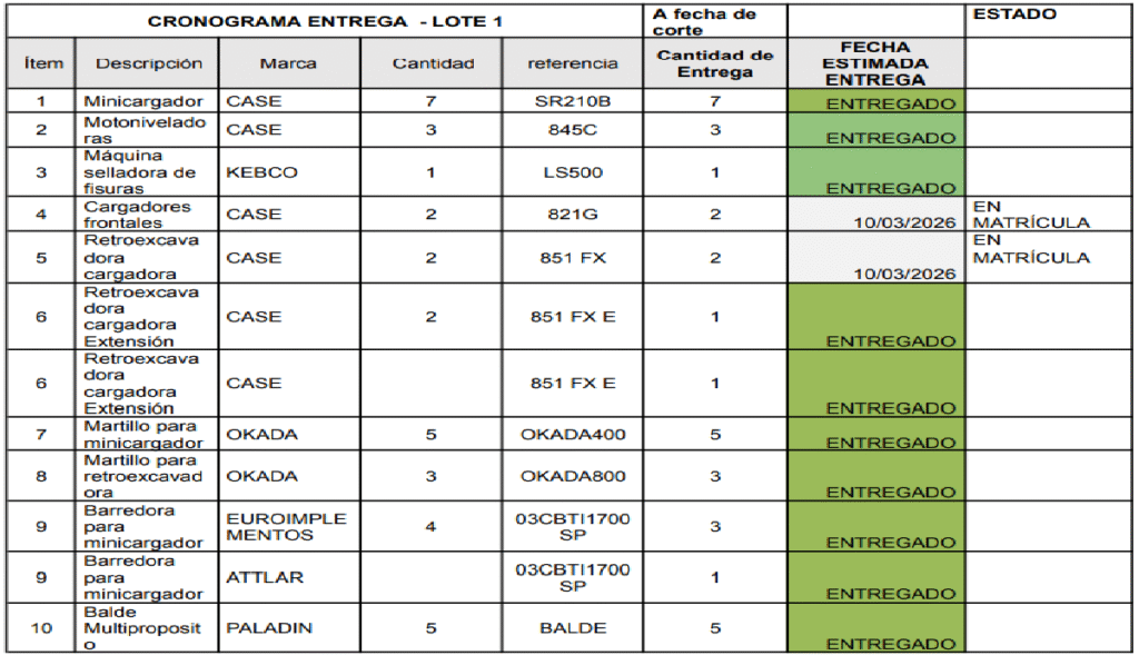 Así las cosas, la nueva fecha quedó para el pasado 28 de febrero. Pero un día antes, el 27 de febrero, Partequipos solicitó un nuevo plazo hasta el 31 de marzo. En esta solicitud, la empresa confirma que siguen los mismos atrasos, pero que esperan entregar todo a lo largo del mes.