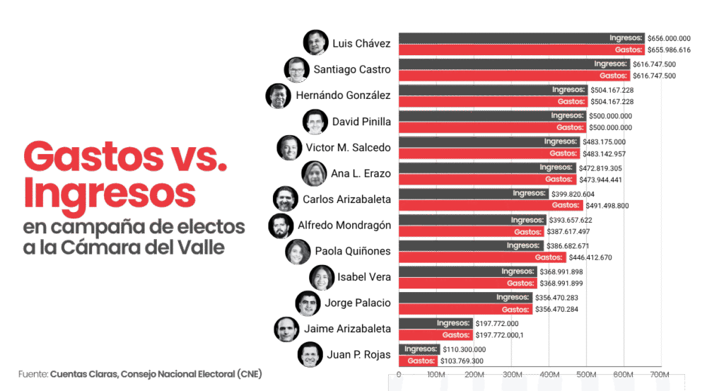 Eventos públicos millonarios y una gran inyección de propaganda electoral caracterizaron las campañas de los 13 representantes electos a la Cámara por el Valle del Cauca. Según los reportes cargados en Cuentas Claras, los gastos oscilaron entre más de 100 y 600 millones de pesos. Además, ninguno estuvo cerca de superar los topes electorales estipulados por el Consejo Nacional Electoral (CNE).