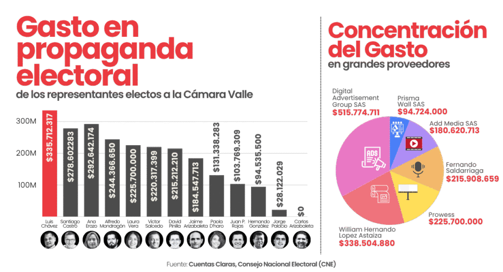 La propaganda electoral fue uno de los rubros en los que más gastaron los representantes electos. No es casualidad, cuando incluso la Alcaldía de Cali intensificó operativos para controlar la publicidad en las calles de la ciudad. Por ejemplo, según lo dispuesto por el Consejo Nacional Electoral (CNE), hasta el pasado 10 de marzo había plazo para retirar todos los elementos publicitarios como vallas, pasacalles, pendones y demás.