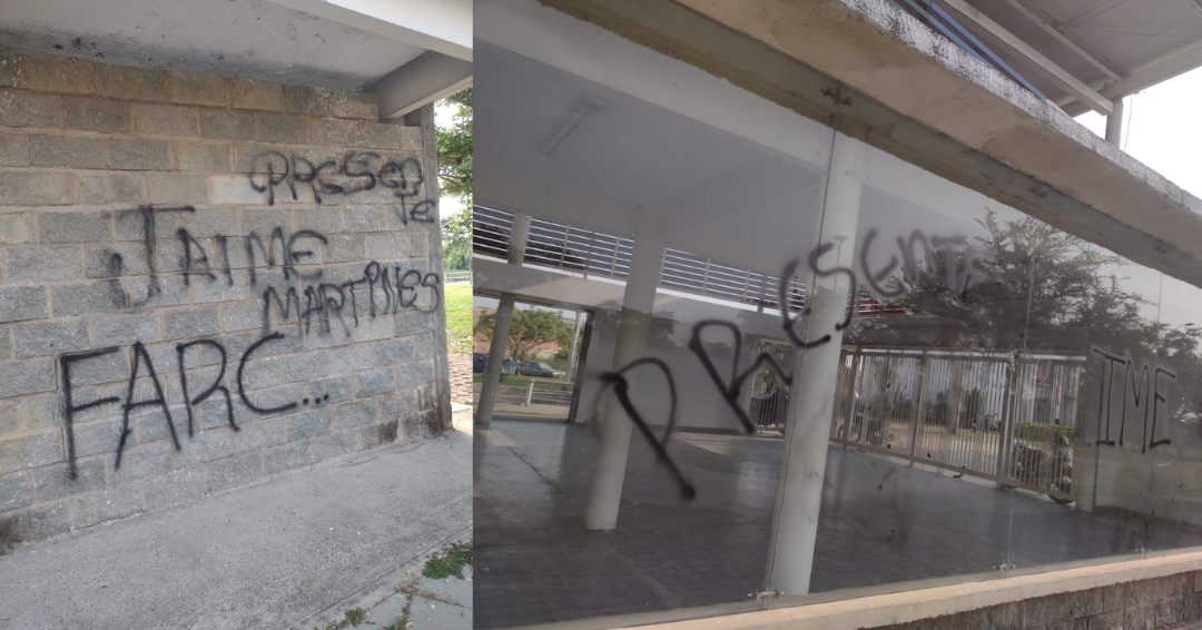 Hace dos días, otros mensajes similares aparecieron en el ingreso a la urbanización, justo donde se lee ‘Terranova’. En ese momento, autoridades y comunidad limpiaron rápidamente el aviso para borrar las siglas de las Farc que fueron pintadas.