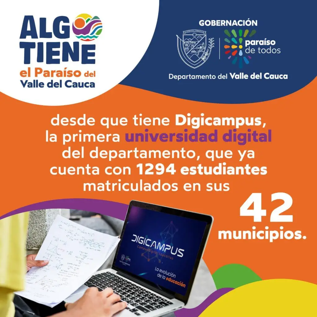 El Valle del Cauca reafirma su compromiso con la educación a través de la puesta en marcha de Digicampus, la primera universidad digital del departamento. En tan solo seis meses de operación, esta iniciativa ya cuenta con 1.294 estudiantes matriculados en los 42 municipios de la región, marcando un precedente en el acceso a la educación superior en Colombia.