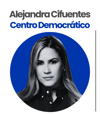 Activista social reconocida por coordinar marchas de oposición contra el gobierno de Gustavo Petro. Es comunicadora social y ha sido columnista. Excabeza de lista al Concejo por el Centro Democrático en 2023, pero los 7 mil votos no le alcanzaron para una curul. Apoyó en campaña al fallecido Miguel Uribe Turbay y a su padre, Miguel Uribe Londoño —antes de renunciar al partido—. Es apoyada por Andrés Forero, cabeza de lista al Senado del uribismo.