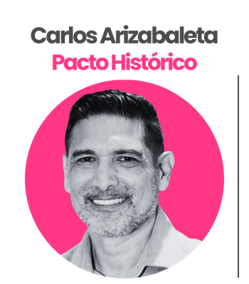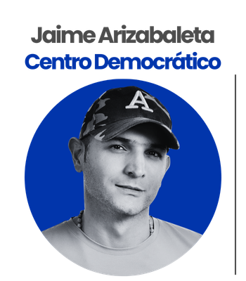 Su padre es el exgobernador Jaime Arizabaleta, absuelto tras estar en la cárcel por presuntos nexos con el proceso 8.000. Es activista social, reconocido por ser una de las voces opositoras más fuertes del progresismo y del gobierno de Gustavo Petro. Es un candidato que ha causado polémica por sus acalorados debates con el representante Alfredo Mondragón y su propuesta antibloqueos de capuchos. Cuenta con el apoyo del exsenador Gabriel Velasco.