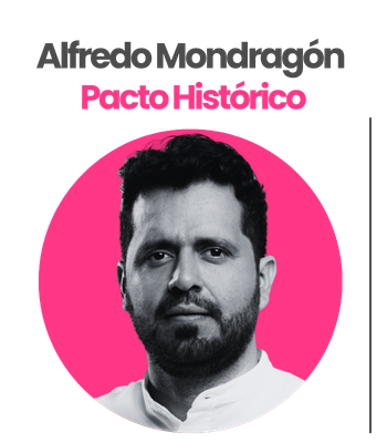 ExFarc, firmante de paz y actual representante. Es la cabeza de lista de la coalición entre Fuerza Ciudadana, partido de Carlos Caicedo, y Comunes, el partido que nació del proceso de paz y que busca pasar el umbral para sobrevivir. Es aliado del gobierno de Gustavo Petro.
